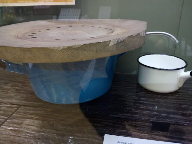 Замечаю, что практически в каждом городском краеведческом музее представлена местная модель самогонного аппарата (интересная модель была в Иркутске). В Перми представлена, наверное, самая простая модель, которую может сделать каждый из кастрюли и деревянной доски (самогонный аппарат).